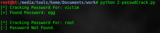 print ‘[*] Cracking Password For: ‘ + user
