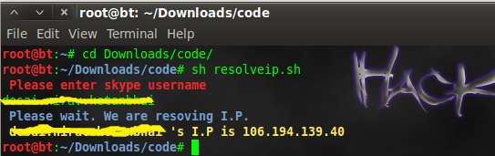 This is simple bash script which query skype username against http://resolveme.org/ and grab I.P.